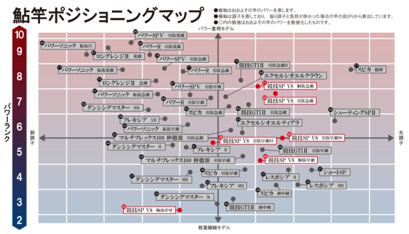 「がま鮎 競技スペシャル」新旧モデルスペック比較